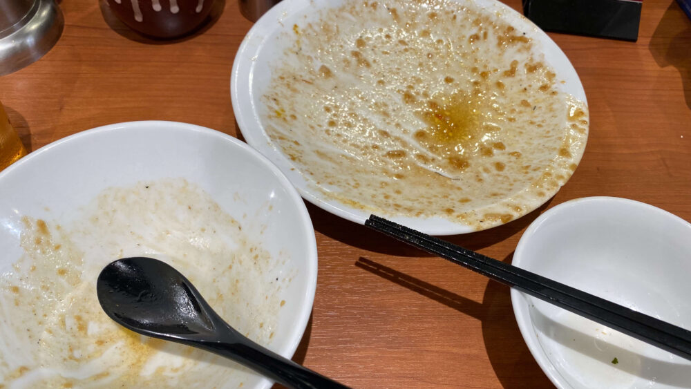 ▲終盤は卓上のカレー粉。これがマジで旨い。ほんのり味噌を感じるカレー味は最高。