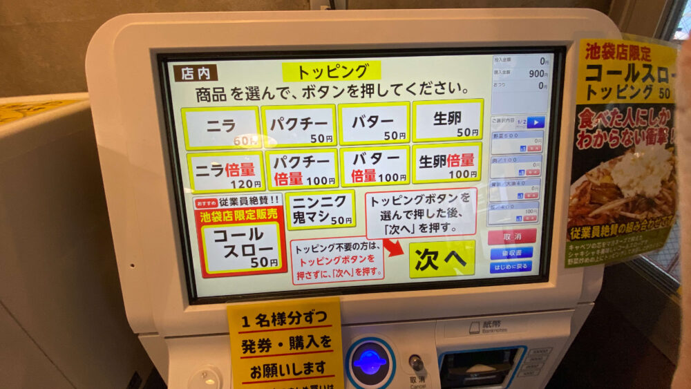 ▲デジタルな食券機で注文します。順を追って注文すれば良く、グラム表示もある親切設計。
