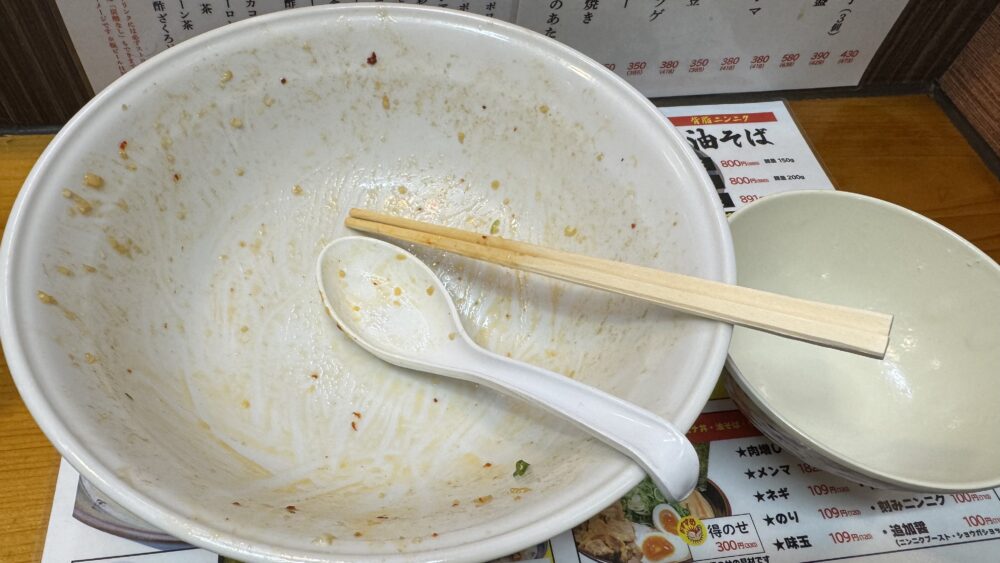 ちょっとタレが一般的な油そばより少なめだったのがデフォなのか、たまたまなのか判断できません。