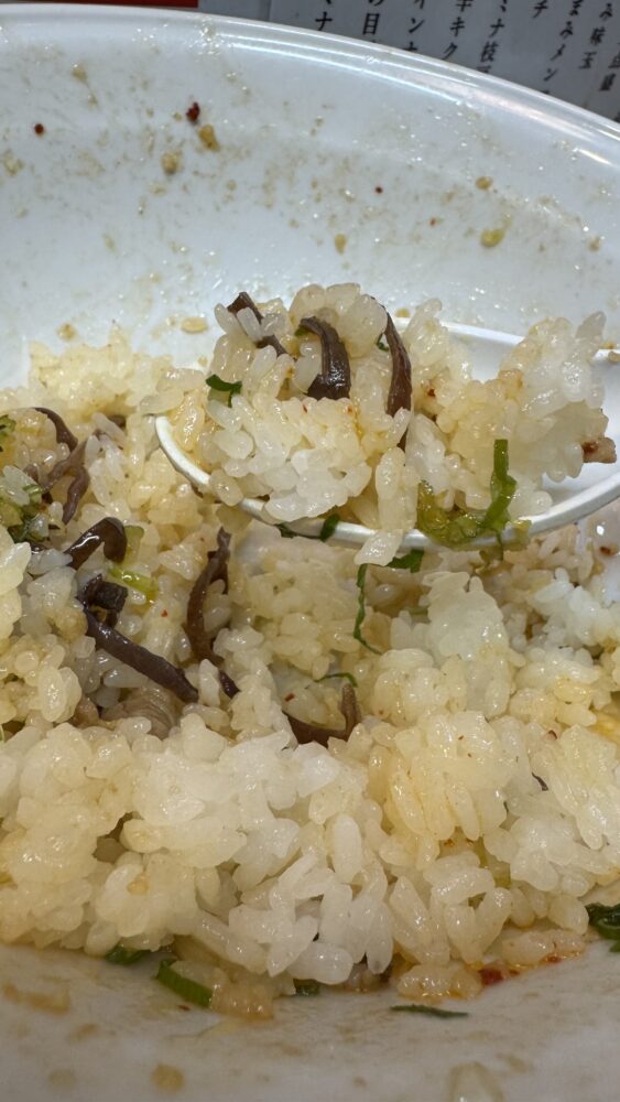 追い飯を頼んだ場合は様子を見ながら、油そばと一緒に食べるのか、後から投入するかを決めていただけると失敗しないと思います。