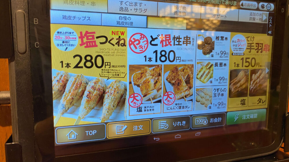 店員さんに席を案内してもらったら、タッチパネルで注文します。