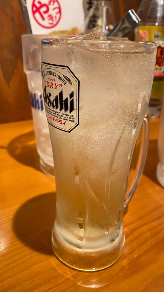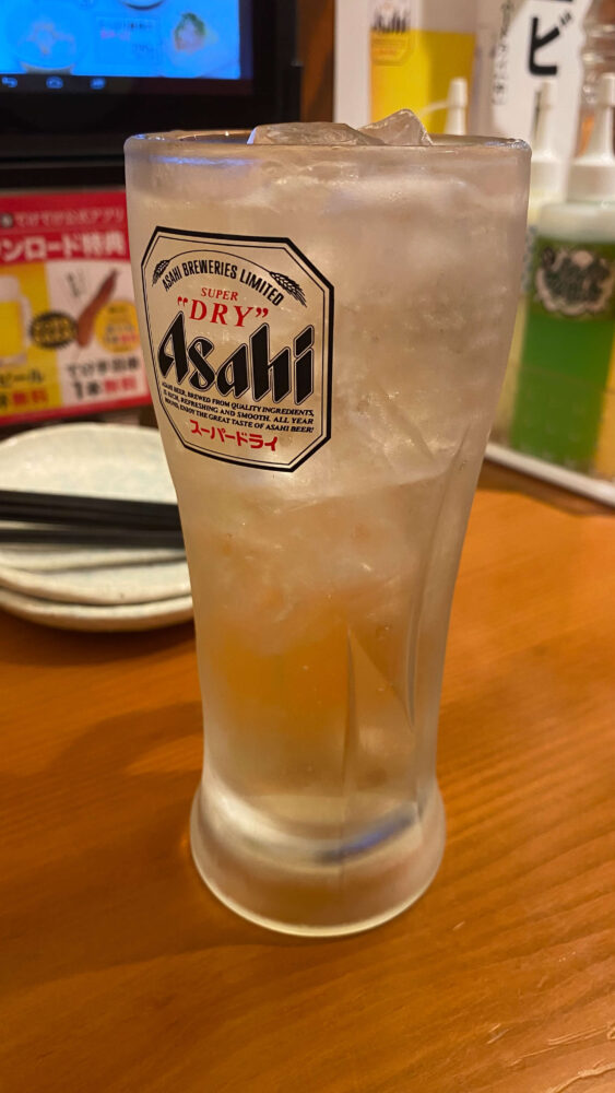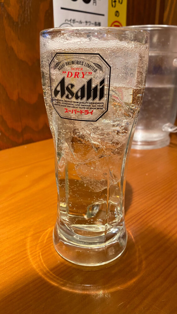 ▲1杯目はハイボールで。ワンプッシュの量が決まっているので濃さが一定になるのは嬉しい。