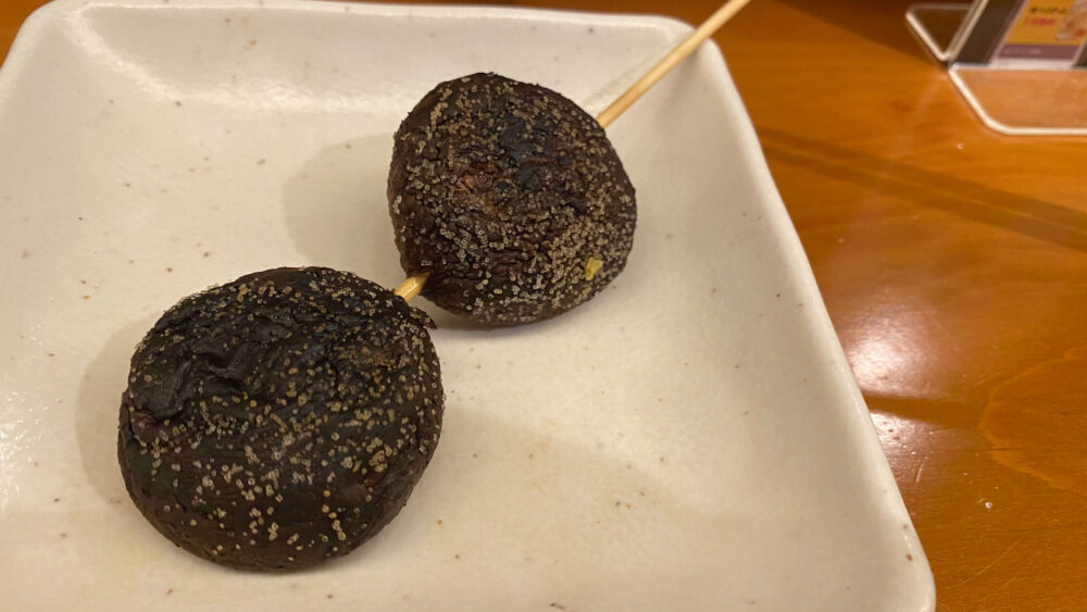 ▲椎茸串の塩(税込109円)。椎茸をシンプルに塩で食べるのは美味しい。