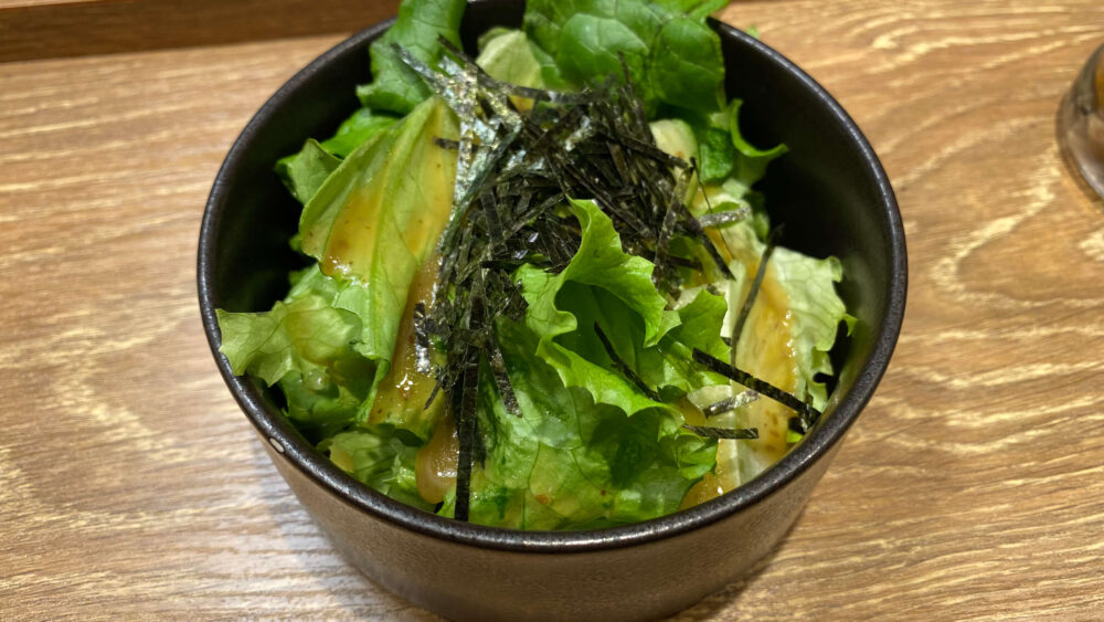 ▲メガ盛りセットが到着するまでミニチョレギサラダでベジファースト。普通に美味しい。