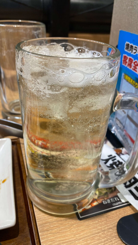 ▲ハイボール2杯目。焼肉をつまみに飲んでいるとお酒が進みますね。