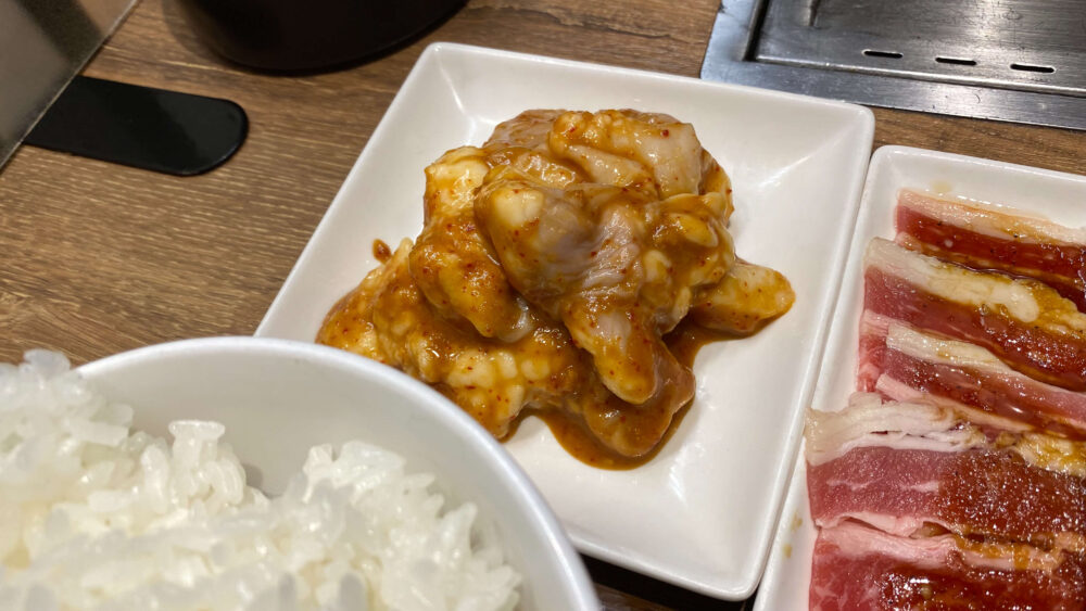▲カルビをある程度味わったら今度はホルモン。こちらもプリプリして味噌だれも濃厚。これまたご飯もお酒も合います。