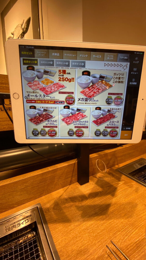 ▲1台につき1台のタブレットが用意されていて、じっくり選んで注文できます。