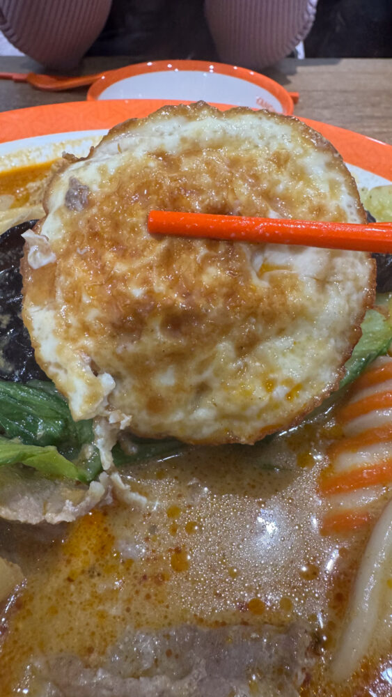 ▲目玉焼き。予め焼かれているので、煮崩れなし。玉子のマイルドさが良いオアシス。