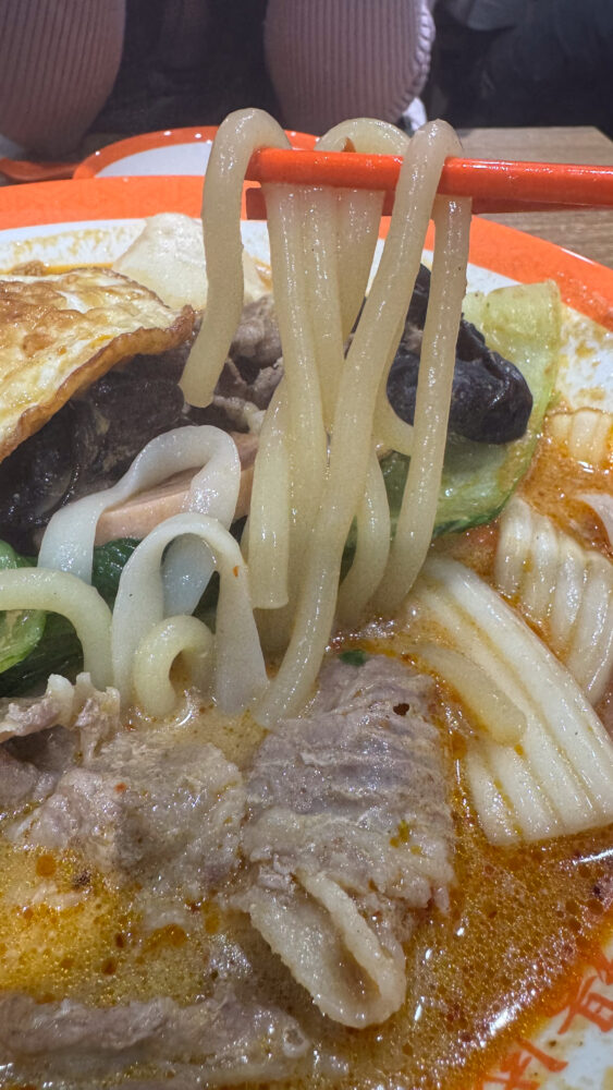▲ホーフェン。ライスヌードルですが、ツルっとしていますがコシは強め。麻辣スープと合います。