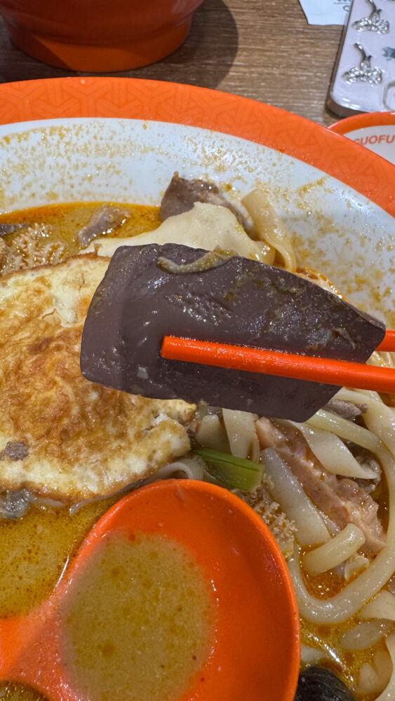 ▲鴨の血。チョコレートのような見た目。プルっとしていて血の感じは薄めで案外食べやすい。