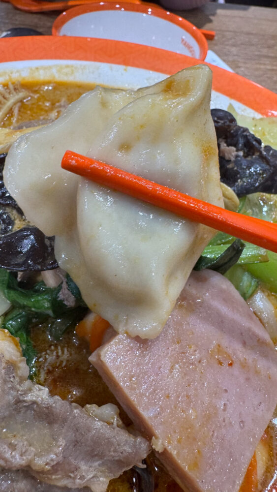 ▲水餃子。シビカラな麻辣スープで食べると辛旨。