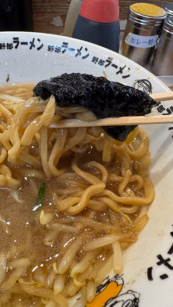 ▲海苔はしっかりスープに浸してから麺を巻いて食べます。動物系に海苔の磯感が加わって旨し。