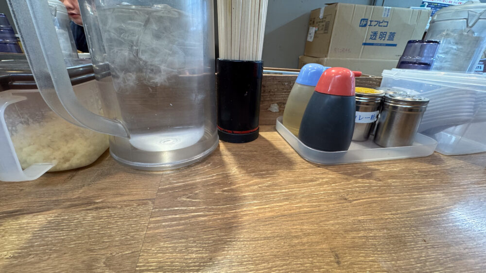 ちなみに、二郎インスパイア店ですがコールは特になく、有料トッピングか卓上調味料で自分好みの1杯にしましょう。