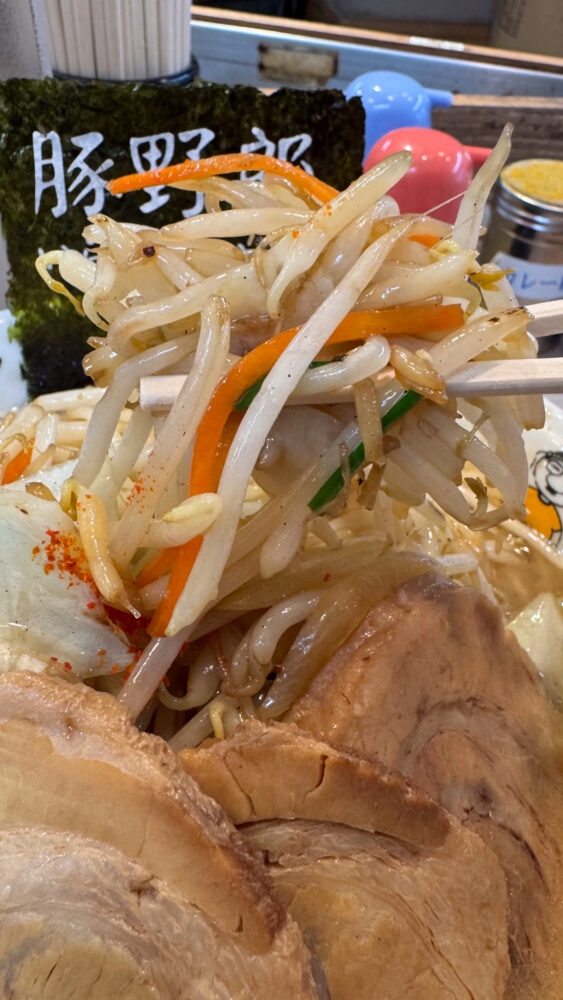 あと、ボリュームは通常の二郎インスパイア店と比べると抑え気味なので、初心者向けかもしれません。
