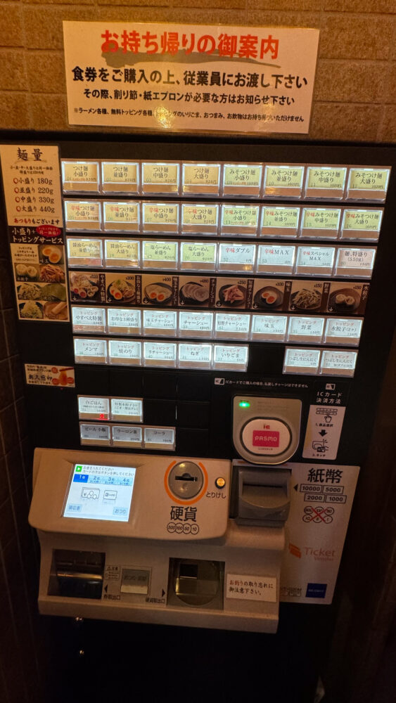 ▲食券機で注文します。交通系ICが使えるのがありがたい限り。