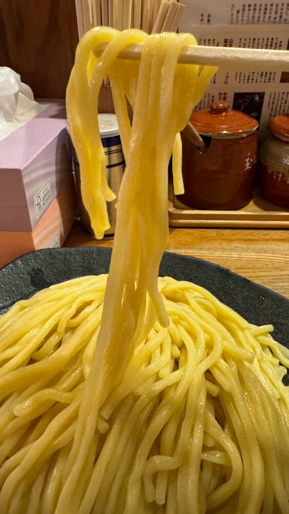 ▲麺は中太ストレートのツルシコ食感。自家製だけあって小麦の風味を感じます。