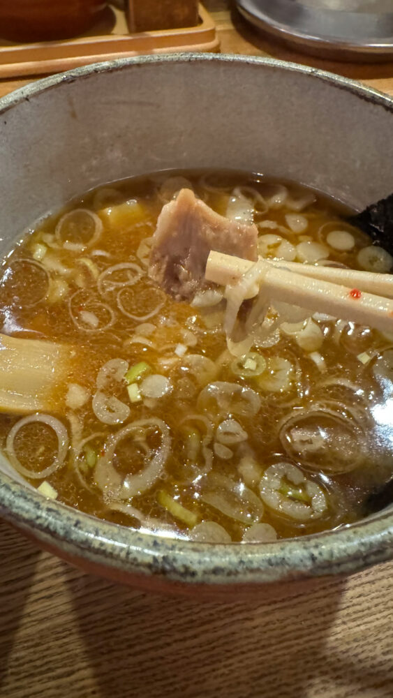 ▲終盤はつけ汁に玉ねぎを入れて味変。ザクシャキ食感が増し、味も玉ねぎの甘さで後味が軽くなります。