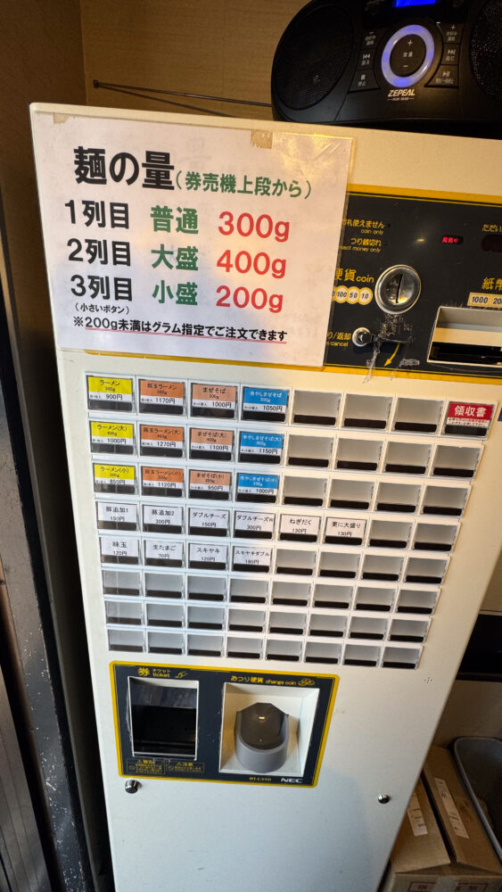 初心者にも安心ですね(食券に選択可能なコールの記載あり)。