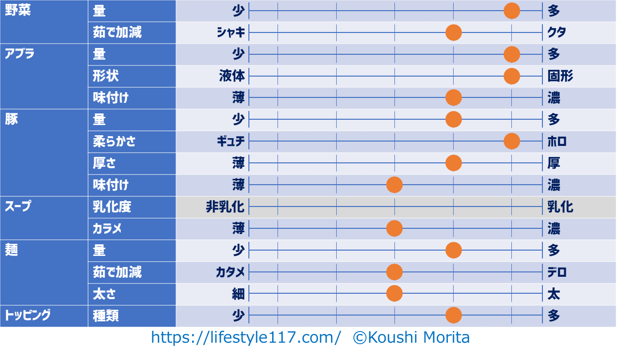 - アブラの量(無、小、普、増、W)