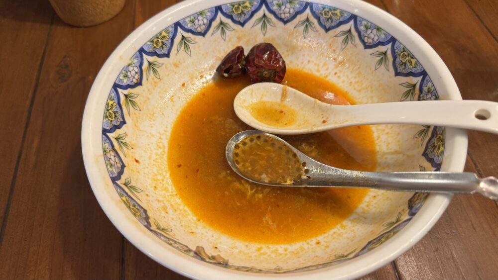 ▲スープは、激辛というメニュー名ですが、酸味より辛味がやや強い程度で辛すっぱ旨。