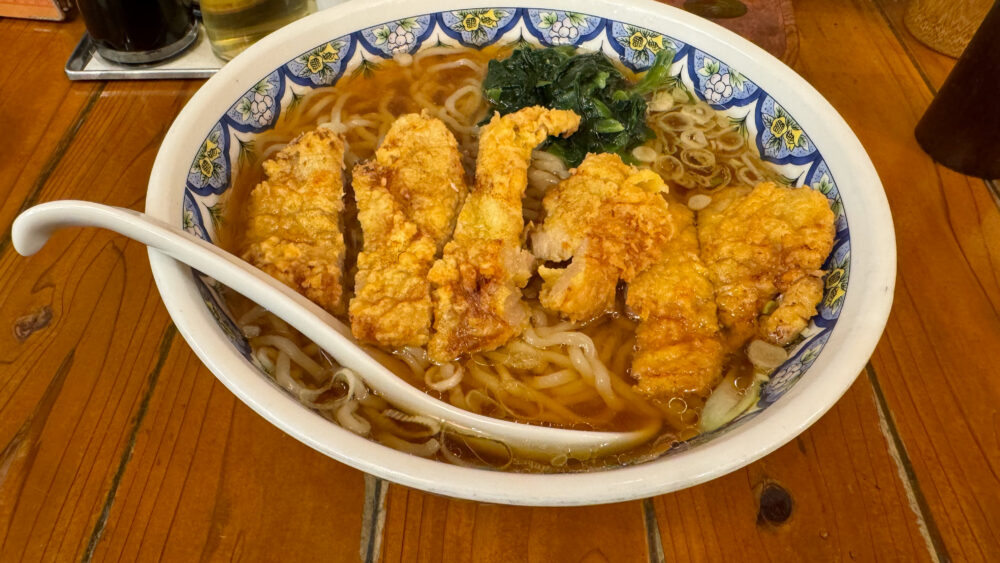 パーコーメンが着丼!パーコー(揚げた豚肉)がインパクト大な一杯です!