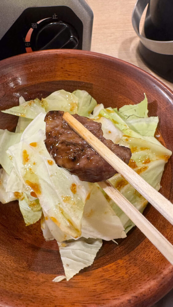 ▲お通しキャベツを再度お替り。カルビだけを食べ続けるのはしんどいので、本当にお替り無料は神。
