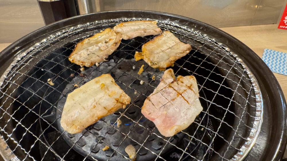 ▲焼きあがった豚カルビは豚の脂を感じて美味しいですね。