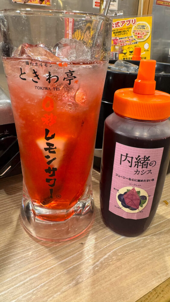 ▲レモンサワー4杯目は内緒のカシス。〆のデザート代わりですね。