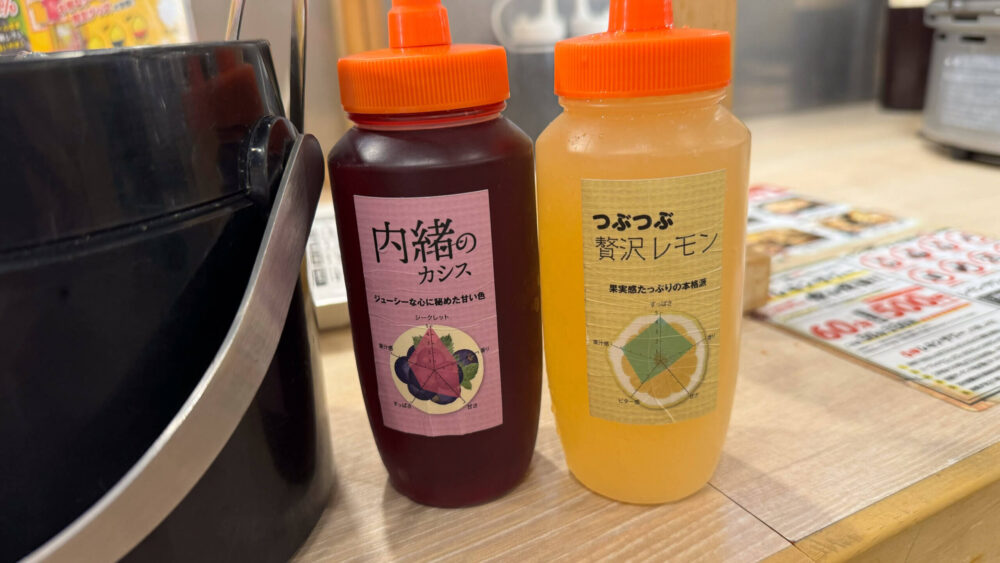 なお、レモンサワーのフレーバーは以下8種のフレーバーから2種選べますが、今回は「つぶつぶ贅沢レモン」と「内緒のカシス」にしました。