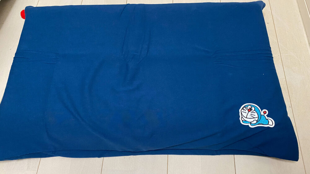 ▲注文時、ギフトになっていたのが、ドラえもんのカバー。赤い部分がドラえもんのしっぽです。