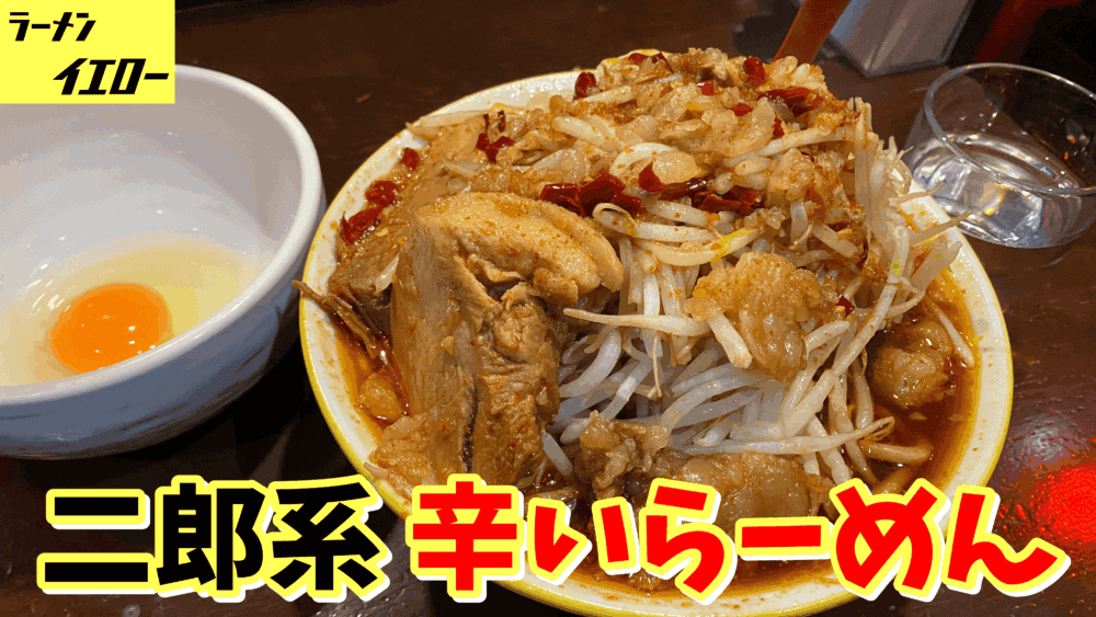 【デカ盛り×二郎系】ラーメンイエロー新宿御苑前店|辛いらーめん大ブタ2枚(やさい多め味あぶら多め)+生たまご(総重量想定1.5kg弱)