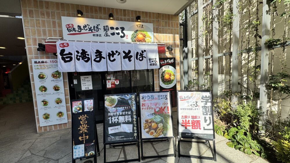 ▲秋津クロスコートにあります。サイゼリヤの目の前。看板はモノトーンで台湾まぜそばの写真も目立ちます。