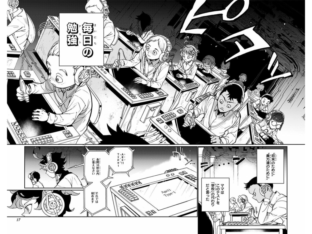 まず、大前提として、「約ネバ」の登場人物は優秀な人が多いですが、中でも主人公3人組のエマ・ノーマン・レイを育てた孤児院「グレイス=フィールドハウス」(作中では「GF」と略されます)出身者は高い知能を有します。