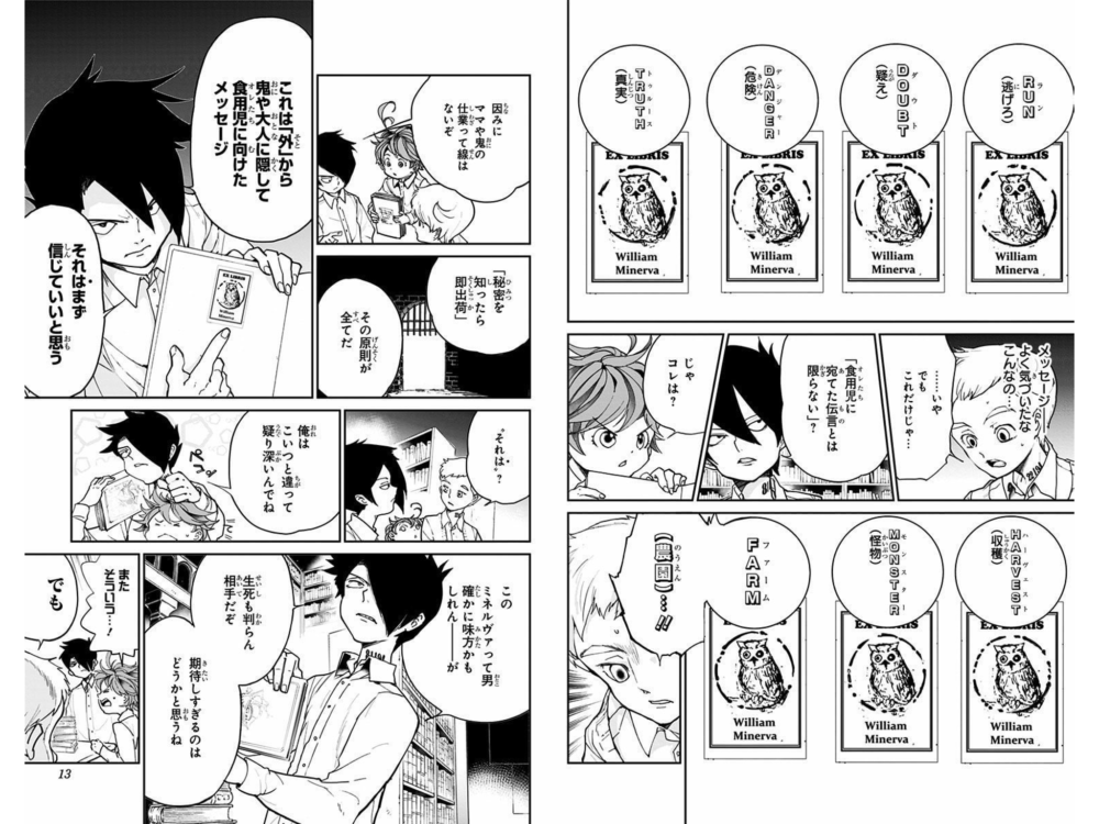 エマがGFの図書室にあった「ウーゴ冒険記」という冒険小説が、外の世界のガイドブックだと気づいてから、レイも冷静になり導き出した結論がこちらですね。