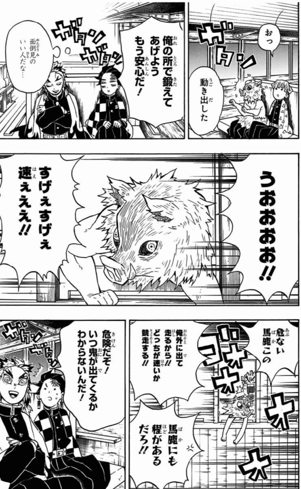 君と猪頭少年はその三両の状態に注意しつつ鬼の頸(くび)を探せ