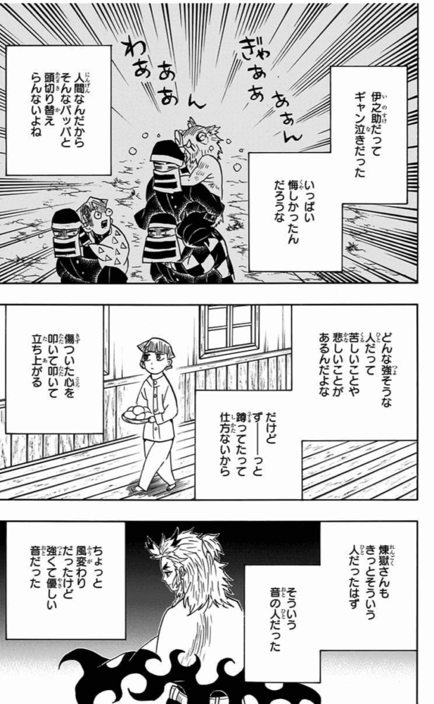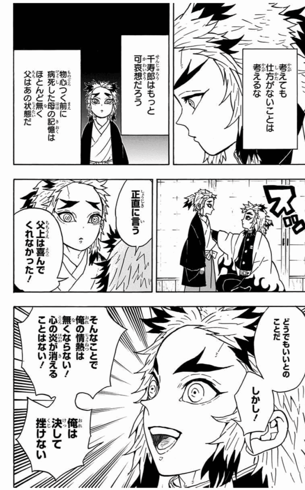 煉獄さんも傷ついた心を叩いて叩いて立ち上がってきたことが伺えますね。
