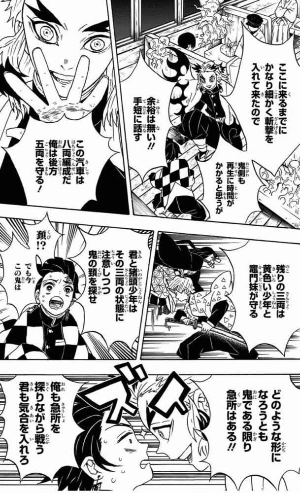 俺は後方五両を守る!残りの三両は黄色い少年と竈門妹が守る