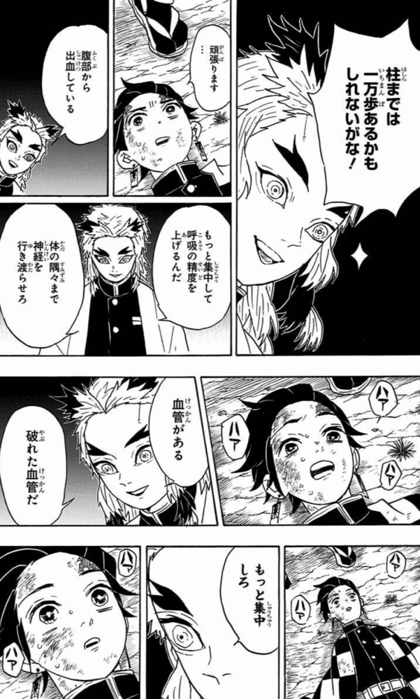 そこで、煉獄さんは全集中の呼吸をさらに精度を上げて止血する術を具体的にレクチャーします。
