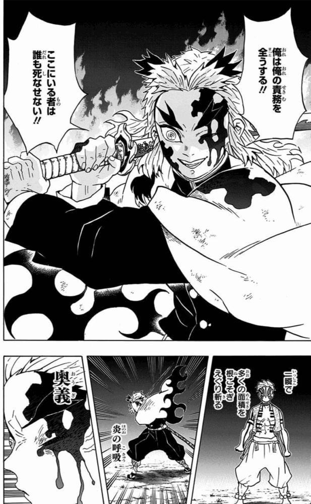 たとえ死の淵に立っていても、自分の使命や責務を全うすべく、全力を尽くすのが煉獄さんのすごいところです。
